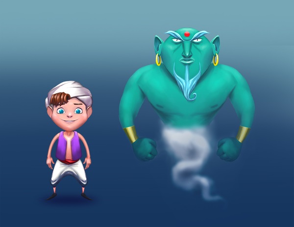 மொதல்ல பயமாகவும், அப்புறம் ஆச்சரியமாகவும் பாத்திட்டிருந்தவன் இப்ப சிரிச்சுகிட்டே ஜீனியைப் பாக்கிறான். இருக்காதா பின்ன… எவ்ளோ சக்திவாய்ந்த ஜீனி. ஆனா எப்படி தத்தியா மீனவன்கிட்ட ஏமாந்து மாட்டிகிட்டுதேன்னு ஒரே சிரிப்பு.