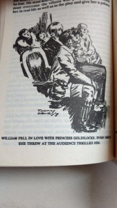 வில்லியமின் நல்லெண்ணக் குறும்புகள் உருவாக்கும் சங்கடங்களில் உள்ள கோமாளித் (slapstick) தன்மை மட்டுமின்று நுட்பமான வார்த்தை விளையாட்டும் க்ராம்ப்ட்டன் எழுத்தில் உள்ளது. வில்லியம் பள்ளியில் படித்த- ஷேக்ஸ்பியர் குறித்த ஒரே ஒரு கட்டுரை வெளிவந்ததால் அவர் குறித்த ஆய்வாளராக தன்னை எண்ணும்- முன்னாள் மாணவர் ஒருவர் ஷேக்ஸ்பியர் நாடகத்தை பள்ளியில் நடத்த முன்வருகிறார். வில்லியமின் வகுப்பிற்கு வரும் அவர் பெகன் (Bacon) தான் ஷேக்ஸ்பியரின் நாடகங்களை எழுதியதாக தான் நம்புவதாக ஆரம்பிக்கிறார். ‘Dick of the Bloody Hand’ என்ற அவன் நண்பர்கள் மட்டும் படித்துள்ள கையெழுத்து பிரதியாக உள்ள நாவலை அவன் எழுதி இருப்பதால் வில்லியமிற்கு தானும் எழுத்தாளன் என்ற எண்ணமுண்டு, எனவே முன்னாள் மாணவருடன் உரையாடத் துவங்குகிறான்.